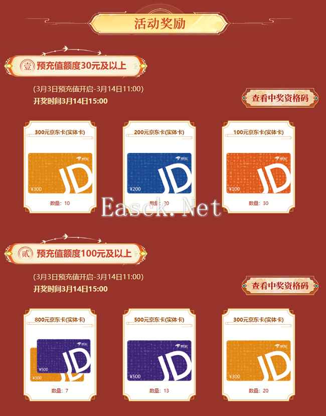 在预充值阶段,累计充值额达到相应的额度即可获得一个抽奖资格码来参与抽奖活动。如玩家在预充值开始后至第七阶段结束前,充值超过最大累计充值额度6000元,则可直接获得7个抽奖码(最多可获得七个抽奖码),以上所有奖励的中奖码必会从各阶段的资格码中产生。 【开奖时间与奖励发放】 所有阶段的开奖时间均为3月14日15:00。玩家在开奖后登录游戏即可查看自己是否中奖。中奖玩家需在3月21日23:59前填写收件信息,逾期未填写的将视为放弃奖励。奖励将在地址填写时间结束后15个工作日内发放。 亲爱的道友们,新服“道十九”的预充值大派送活动已经开启,豪华奖励等你来拿!抓紧时间参与活动,赢取心仪的奖品吧! |
