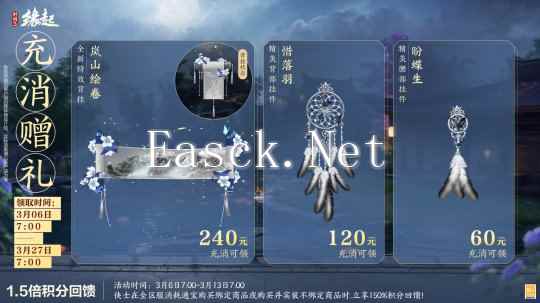 三月东君裁柳线,春衫犹带杏花寒,《剑网3缘起》春日盛典拉开帷幕,东风携花信,且看江湖女儿醉红妆!测试服与盛典同日开启,自定义体型、侠客助战等全新内容悉数登场,诚邀诸位侠士前往测试服体验新赛季、新内容、新玩法! 【晴岚染霓裳 墨韵赠韶光】 迎春盛宴开启,商城优惠折扣携多款新品惊喜来袭!同人嘉年华外装「龙隐」以云壑为韵,步履间金鳞隐现;特效披风「六翼流苏」长尾曳地,落英回雪绘天光;月度限定外装「自在多罗」炽焰燃金,一展异域风情;全新充消特效背挂「岚山绘卷」开卷即现水墨山河。韶光易逝,春意难留,诚邀诸君执剑携酒,同赏风月! 同人嘉年华外装「龙隐」 潜鳞藏云壑,幽影动星津。同人嘉年华外装「龙隐」将天地浩渺凝于方寸衣料,侠者隐逸之姿如轻云蔽月,锋芒暗藏却难掩山河气魄。 成男款龙纹游弋于襟袖之间,金鳞随步履明灭生辉。衣摆以金丝勾皴层峦叠嶂,行走时恍若踏云,一览群峰。 成女款素绡裁雾,远山黛影于裙裾间晕染开来,如宣纸泼墨未干。珠玉披帛自腰间向两袖交缠,星河腾挪,行止间清辉流转,孤高清冷。 萝莉款下裙层层叠纱,云絮凝露。裙身缀饰金银饰品,碎光浮动化作一池星月。耳旁龙角飞斜,似幼龙初窥人间。 售卖信息 标准版礼盒:售价28,000通宝内含成衣+定制黑发,不绑定版3月6日20:10限量上架500份; 豪华版礼盒:售价48,000通宝内含成衣+定制黑发+同款定制金发,不绑定版3月6日20:15限量上架500份。 绑定版3月6日20:20-4月3日7:00限时上架商城。 同款定制白发3月6日20:20-4月3日7:00限时上架商城,均为不绑定。 ![]() ![]() ![]() ![]() ![]() ![]() ![]() 特效披风「山河颂·六翼流苏」 素雪凝光,金翎织锦,特效披风「山河颂·六翼流苏」如天河流瀑倾泻而下。颈后金环相叠,藤蔓花叶纹蜿蜒勾连。双肩白羽展翼,浅金细线勾勒,风起时舒展凌空,欲携云光直上九霄。下摆轻纱漫卷,蝶翼浮光,长尾蜿蜒,曳地处簇簇绢花缀连若星轨彗尾,划破春日寂静长空。 特效化作片片落英,乘风回旋上下沉浮,点点星芒萦绕其间,于阳春三月带来了一幕特别的“雪景”。 售卖信息 售价68,800通宝; 不绑定款3月6日20:05限量上架300份; 绑定款3月6日20:20-4月3日7:00限时上架。 ![]() 月度限定外装「自在多罗」 月度限定外装「自在多罗」携全新偏色“无嗔”、“净心”再临大唐,以吐蕃风情续写异域诗篇。 「自在多罗」整体作劲装设计。“无嗔”成女款以白锻为底,玄墨相衬,摆袖间黑金焰纹翻涌;成男款浅蓝衣襟半敞,左肩金轮映曜,如青天白日高悬;萝莉款紫霞渐染衣袂,金铃缠足腕,劲装短打更显灵动。“净心”成女款天蓝绸缎裹素袖,玄金护腕锁焰纹,若苍原星火长燃不灭;成男款灿金衣袍配以月白衣摆,白金烈焰沿裤脚盘旋;萝莉款碧波浸染,金饰于春水绿绡间相映生辉。 本次「自在多罗」往期偏色也将同步返场,侠士可随心挑选心仪的异域华裳。 售卖信息 3月6日7:00-3月27日7:00限时上架商城,共6款偏色可选,购买绑定。 配套往期黑发同步上架,售价10,000通宝。 ![]() ![]() ![]() ![]() ![]() ![]() 迎春盛典 特惠焕颜 春意渐浓,焕新正当时!3月6日7:00—3月10日7:00,《剑网3缘起》开启春日限时钜惠!捏脸系统全场5折,商城常驻发型同步开启9折优惠,更有多款精致贴花即日起长期上架商城,助侠士轻松打造专属春日妆容,共赴这场美丽邂逅! ![]() 充消赠礼 云边孤鸿意归思,天外春山满夕岚。3月6日7:00-3月27日7:00,侠士累计充值消费达指定额度,即可领取对应档位的精美挂件赠礼!腰部挂件「盼蝶生」蝶翼缀珠宛若停驻腰间,背部挂件「惜落羽」墨羽垂绦层叠如屏。三档更有特效背部挂件「岚山绘卷」,展开画卷可见玉轴流转华光,水墨绘就远山飞瀑,繁花摇曳引彩蝶停栖,动静之间尽显东方意境。 3月6日7:00-3月13日7:00,侠士在全区服消耗通宝购买绑定商品或购买并实装不绑定商品时,可享150%积分限时回馈! ![]() 【丽影照春风】 3月6日7:00-3月10日7:00活动期间,前往花萼楼界面可领取「红尘醉」与限时节日烟花「飞仙引梦」,完成「红尘醉」任务后开启「江湖丽影宝箱」即有概率获得不绑定版「马驹·里飞沙」、「夜幕星河礼盒」等惊喜掉落!完成「康舞舞」的委托必得限定挂件「鹤衔云」,已拥有该挂件的侠士则可获得「雪原之密」,对其他玩家使用「雪原之密」可为其附加养颜效果,且目标侠士有几率获得限享一张的(9折/85折/79折)不等折扣优惠券!愿各位侠士若皎月凌霜华,似飞鸿踏无踪,在这片江湖书写专属于你的璀璨篇章! ![]() 东君裁柳,杏雨沾衣,「苍雪龙城」赛季进入倒计时,春日庆典盛大开启,多样新品琳琅满目,更享150%积分与赠礼回馈!更多惊喜内容与你相约《剑网3缘起》。 |