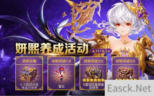 而在全面进入觉醒时代的新服中,不仅开局的新手英雄将被替换为觉醒伊凡、觉醒卡琳和觉醒斯尼夫,所有玩家还将享有经验、英雄掉落概率、道具掉落概率的全方位提升,相信在如此buff加成的加持下展开的冒险之旅一定不会让大家失望。 二、妍熙养成活动 随着妍熙的震撼降临,一周年庆典也随之而来,作为一周年庆典之际降临的英雄,活动期间只需帮助妍熙觉醒并突破一定次数,即可领取5~6星挑战者饰品召唤券等丰厚的奖励。