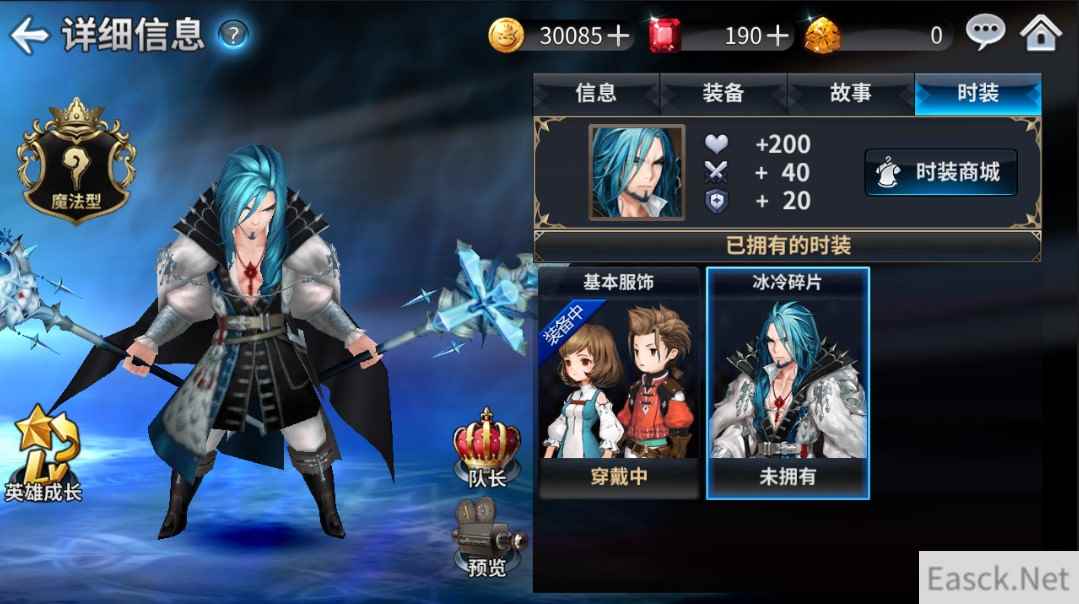 【冰冷碎片时装 帅气美男子】 此外,在本次更新中,官方还添加了帕斯卡的时装【冰冷碎片】,从他的进化外形可看出,这虽然是一个心机较重的男子,六星外形更是带上了神秘的面具,但是其实面具的背后,藏着一副冷峻的面庞,野心是他一直以来追求的成就,统一大陆并不是终点,也许终点在他自己内心深处。