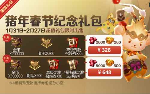 此外,为了广大玩家们都能够如愿获得新宠,在此次活动期间内,新宠物孙小空的获得概率也得到了大幅度提升,相信一定可以让大家过一个大大满足的新年。