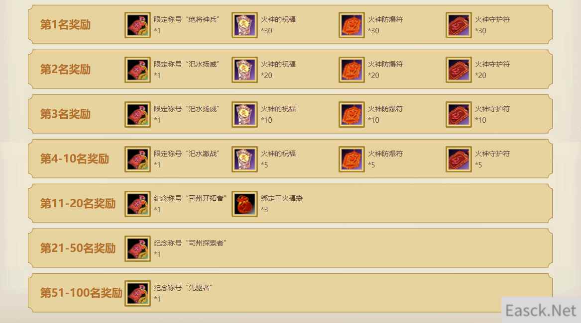 登临巅峰 英雄冲级排名 新服开启后,将开放冲级排名活动。榜单会于每日12:00更新,活动截止时的排名为最终排名。最终等级排名前二十的玩家将获得三火、限定稀有称号等珍稀道具奖励,排名第一的玩家还将获得版本限定称号“绝将神兵”奖励,限定称号还拥有高额属性加持,可以大幅提升玩家战力。