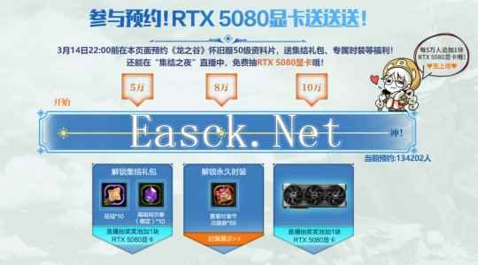 英雄集结官“骆歆”,邀你来抽RTX 5080显卡! 《龙之谷》怀旧服50级资料片预约活动火热进行中,登录页面完成预约,就有机会免费抽英伟达RTX 5080!每预约5万人,追加1块5080,无上限!还有集结礼包、永久时装免费送送送!只要完成预约,还可进行道具和特殊奖池的双奖池抽奖机会,道具奖池100%中奖。邀请小伙伴完成预约,就能额外获得1次道具抽奖机会哦!本周五19点来《龙之谷》直播间,和英雄集结官“骆歆”一起欢度“集结之夜”,福利互动嗨到爆!
