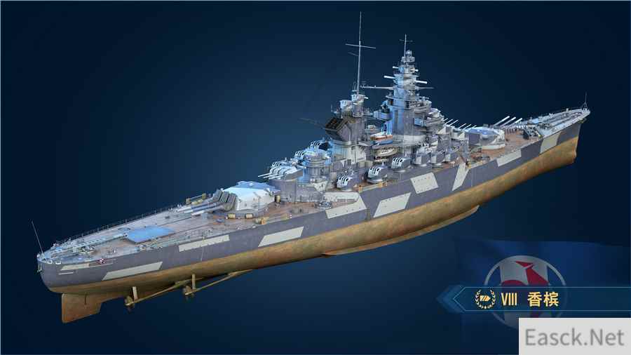 在游戏中,香槟号作为一艘拥有强大火力且射程很远的狙击手,其配备了六门精准的406/50 Mle 1938火炮,安装在两座三联装炮塔之中,主炮的射程高达25公里,让你可用一招天外飞仙取敌首级。 而构成其强大火力网的还不止这些大口径的神器,香槟号还搭载了被安装在三座三联装炮塔上的九门152/55 Mle 1936火炮,和置于双联装炮塔上的二十四门 100 毫米/45 Mle 1933 火炮,海量的火炮足以弥补香槟号因没有鱼雷武器而导致的伤害不足问题。有了大量两用炮的助阵,不仅让你的威慑力加倍提升,还能在近身缠斗中保持高昂的攻击效率,想用走位躲避我的攻击?360度副炮环绕专治各种蛇皮走位,再也不畏惧那帮散装驱逐和轻巡了,因为下面还是我的回合!