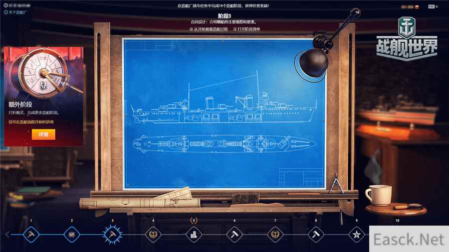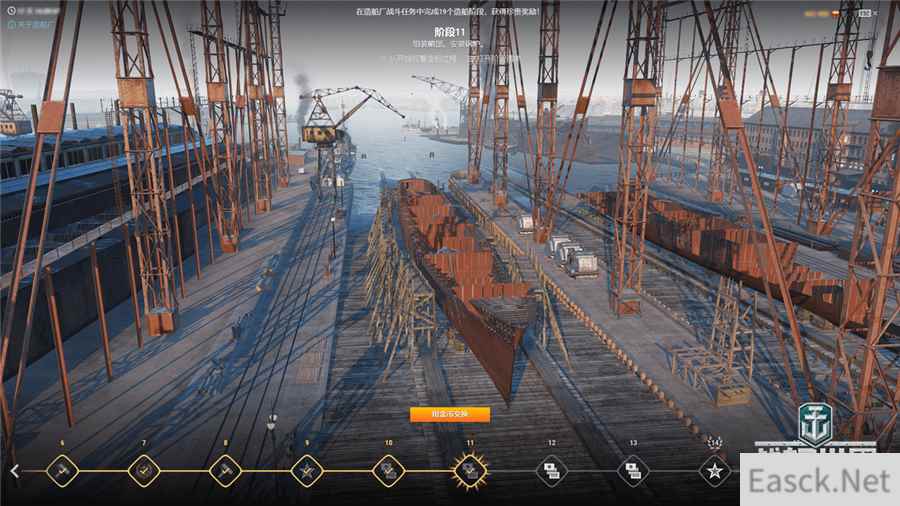 舰长们每次完成船坞中发布的战斗任务,皆可推进工程进度,从而完成造船阶段。整体战斗任务将会在0.10.3和0.10.4两个版本中开放,在休闲放松中也可顺利完成建造哟~