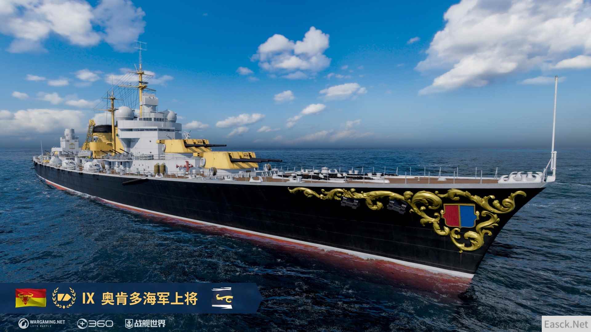 【造船厂】 造船厂内迎来了一位IX级巡洋舰新锐奥肯多海军上将。强大的主炮组,为其提供了出色的投射量和良好的每分钟伤害数据。独特的射击模式,可以让主炮的准确度提升,代价是装填时间变得更长。略显脆弱的装甲,意味着舰长们必须远离那些大口径的高等级舰船。好在机动性上的优势能够保证奥肯多海军上将可以迅速远离危险。
