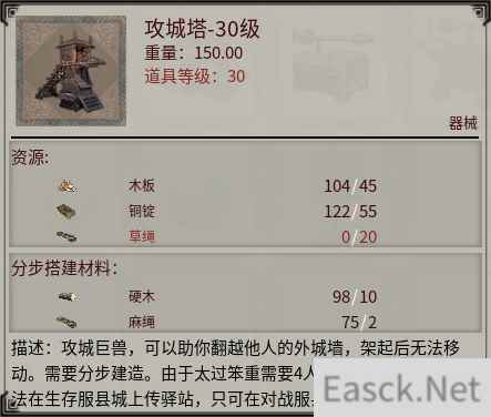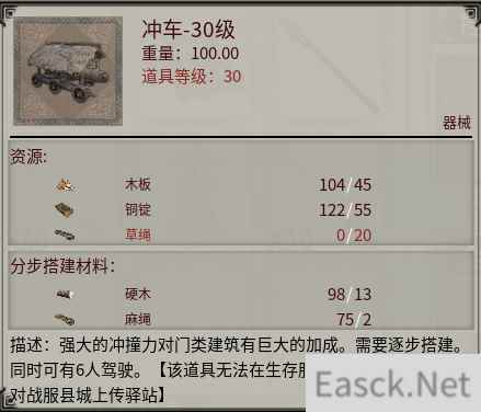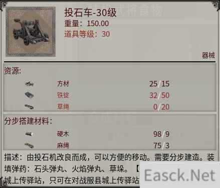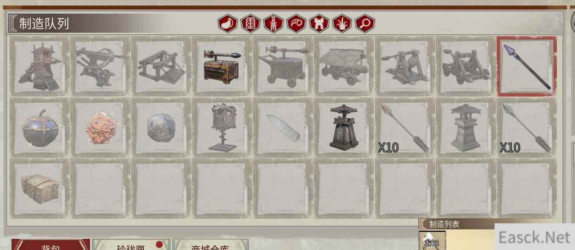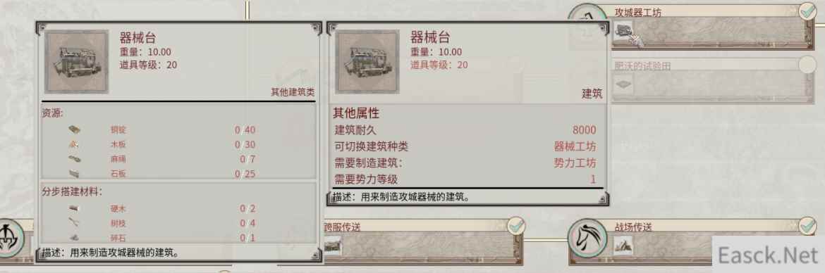 在势力科技中解锁器械配方后,就可以在器械台中制造对应的攻城器械了。