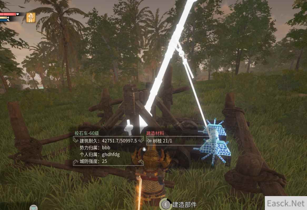 ● 攻城器械操作指南 在操控状态下点击左键可装填弹药,角色背包内有多种弹药时按“R”键可切换使用的弹药。操控状态下,右下角会显示当前角色背包内可使用的弹药种类和数量。将弹药储存在器械里也能进行发射。