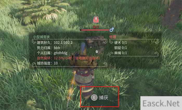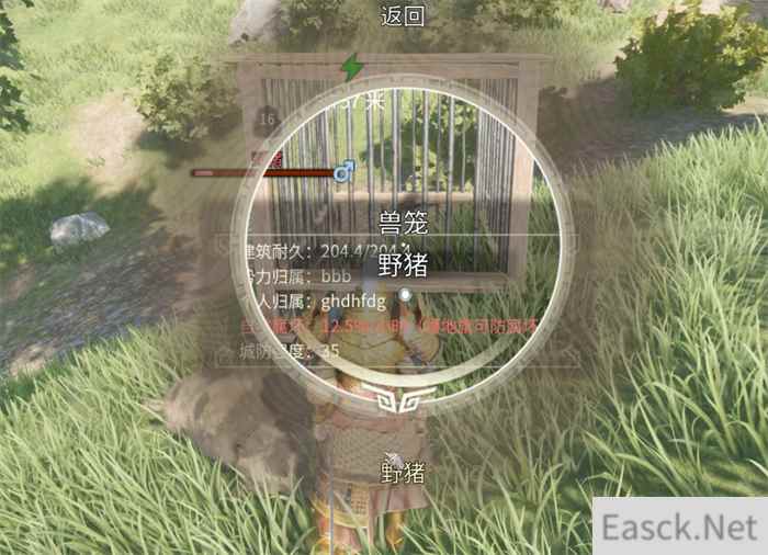 成功捕获兔子 2)动物(鹿、狼、猪、豹子、熊、鳄鱼、老虎)捕捉方式:首先,制作板车,可以人拉也可以马拉,制作兽笼,把兽笼安装到马车上。其次,制作可以击晕目标的棍类武器,或者使用钝头箭,将目标动物击昏。在动物昏倒后,拉着装有兽笼的板车到动物附近与兽笼按E交互,将昏倒的动物转移到兽笼内。拉着装有昏倒动物的板车到动物圈附近,对着建筑按住E,放入就成功将动物转移入窝中,可以开始饲养。