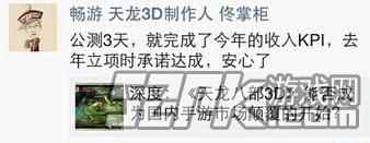 《天龙八部3D》制作人表示3天完成KPI 据了解,畅游原定《天龙八部3D》的月收入KPI为几千万月流水,目前来看《天龙八部3D》已大幅赶超了畅游自身计划,据畅游制作人表示“上线3天已经提前完成了KPI”,而这款游戏发布首月收入有望过亿。 目前《天龙八部3D》游戏内容支持约3个月时间的消耗,畅游预计于12中旬上线新资料片,并以每月一部资料片的频率更新。而在推广手段上,畅游相关人士表示:“重度MMORPG游戏的推广今后还将更加依赖垂直游戏媒体,依靠其对核心玩家的充分把握。” 重度游戏时机已到? 《天龙八部3D》势如破竹的收入增长,反映了目前国内手机游戏用户中重度玩家的增多的趋势,与《天龙八部3D》前后脚一致的是,腾讯在今年10月中旬开始了一个批次的中重度手游产品的发布。 对于眼下排行榜上不断涌现重度游戏的情况,曾询问某上线微信平台国内游戏开发商,为何腾讯会选择该重度手游发布,得到的答案是“腾讯认为重度游戏的时候到了。” 而回顾目前收入榜的情况,腾讯近期发布的重度微信游戏,有着端游公司背景的畅游、网易、多益多款产品占据着收入榜的好位置,除《刀塔传奇》之外,一定程度上国内纯手游公司产品出现了一轮无奈的疲软。 |