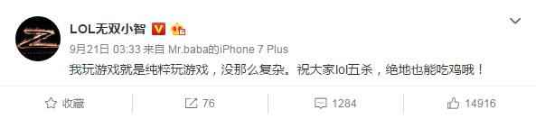 小智公开回应:最近确实在玩吃鸡,但玩的是这一款