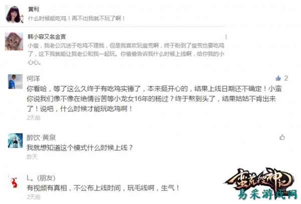 自从山海经神话端游巨制《蛮荒搜神记》曝光吃鸡视频之后,玩家纷纷留言并表现出了浓厚的兴趣。有肯定玩法细节的,有提建设性意见的,还有催促赶紧玩法上线的,今日,有关吃鸡进展的内部消息也泄露了出来…… 【内部消息透露 开年吃鸡上线有望?】 何时能吃鸡这是目前玩家最为关心的问题,而近日研发部门的小道消息也相继流出。据说,曝光出来的吃鸡视频上所展示的神话版大逃杀玩法,已经完成了十之七八。玩家喜欢的古神附身彩蛋和神兽攻城、天降火雨都将在上线的版本中保留和优化,而保留职业捡取物品的设定将会有所更改。至于是改成呼声最高的“投胎制”还是骑着赤火凤从天而降,暂时卖个关子,不过心急的玩家莫慌,或许过完年你们就能“大吉大利,蛮荒吃鸡”喽! 神兽屠城中的巨型神兽夔牛 【戏精的诞生 玩家花式催问吃鸡上线】 不知道这消息的来源是否可靠,但是这几日,《蛮荒搜神记》的微信后台全部都是吃鸡玩家追问吃鸡的留言和私信。千等万等,百般猜测终于等来了官网的吃鸡视频曝光,结果上线的时间却不得而知,心急的玩家自然耐不住性子,花式催问且每一个都是实力派戏精。 有弱小可怜又无助型;有博古通今讲故事型;有威逼利诱义正言辞型;还有一不开心放狠话型……看来,玩家真的是很想在神话世界里来一场生存大战呢! 玩家花式催问吃鸡何时上线 除了吃鸡玩法备受期待以外,春节福利活动也即将上线。快来猜想一下新年都会有什么样的趣味玩法和福利大礼呢?关注官方微信公众号(manhuang_cyou),获取最新的爆料信息吧! 信公众号(manhuang_cyou),领取现金红包、游戏道具和代言人迪丽热巴签名照 【关于《蛮荒搜神记》】 由迪丽热巴代言的《蛮荒搜神记》是畅游首款采用CryEngine3引擎开发的次时代MMORPG大作,画质细腻,场景恢宏。在这里你将遭遇上古传说中的洪荒神兽,你可以狩猎他们并将其收服,并驾驭着神兽与敌对部族互相征战厮杀,体验战场中万兽奔腾所带来的震撼!蛮荒搜神记,邀你共赴一场生命的冒险! |