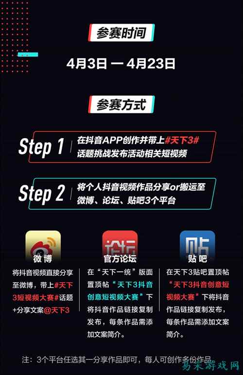 大荒少侠性感在线 《天下3》抖音创意大赛创意PK