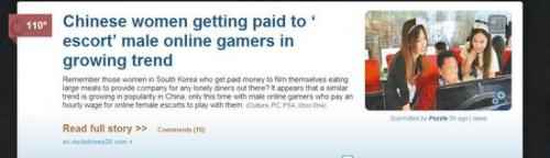 近日几家外国网站都报道了关于“陪玩女”在中国热销的场面,先来看看他们是如何评价这些陪玩女郎的。在文章开头,他们首先提到了曾在韩国火爆的某位女主播,这位女主播因在网上直播吃饭而名噪一时,随后话锋一转,将矛头直指陪玩女,指出,在中国,还有这么一群陪男玩家游戏的女郎,给钱就陪玩,甚至还有专门的中介,在其中牵线,收取5-10%的佣金,这些女孩子每小时收取20到100人民币不等,其中的尖果儿能月入8000元。由于缺乏管制,在陪玩女背后还隐藏了许多不能明说的交易。 这或许并不是一件完全的坏事,起码证明了这些男人在努力的想与他人有更多的交流,只是我们建议道,他们还有别的方法,别如和同事一起喝喝咖啡什么的。 还有外国的网友在报道后面也发表了自己的观点。