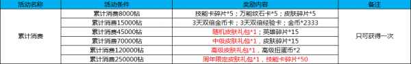 活动十四:累计消费 活动时间:4月27日-5月7日 活动规则及奖励: 活动期间,累计消费达到相应活动,即可获得相应奖励。