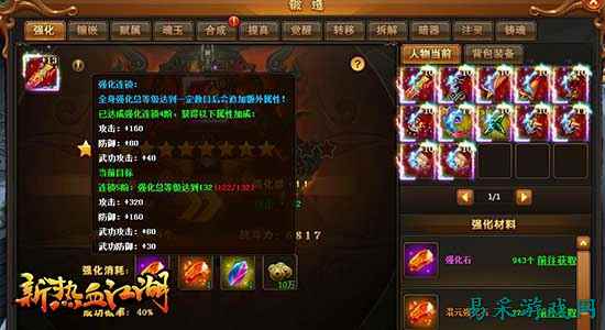 腾讯《新热血江湖》中有着多种不同的连锁,包括强化连锁、镶嵌连锁、附魂连锁、淬炼连锁在内,所有加成效果都可以在人物界面中的角色下方查看。