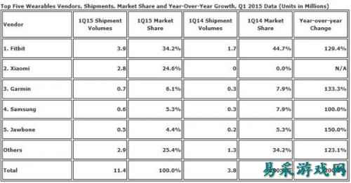 更关键的是,Apple Watch本身也存在着问题。例如研究公司UserTesting对部分Apple Watch 用户进行调查显示,有近19%的受访者对Apple Watch第三方应用进行了抱怨,认为第三方应用的速度和质量远不如Apple Watch 的原生应用可靠,第三方应用也是被吐槽最多的问题。 种种迹象表明,Apple Watch并非像业内之前预估的那般大卖,且未来也同样充满变数。当然我们并非说Apple Watch失败(毕竟其销量在智能手表厂商中已遥遥领先),而是指与之前业内期待Apple Watch大卖来促进和拉动不温不火的可穿戴设备市场,进而成为引爆点的作用存有差距。这也是为何苹果在Apple Watch发布不到3个月内就在不久前举行的WWDC2015上发布新的Watch OS2系统和第二代Apple Watch如此之快被放出消息。可见业内(包括苹果自己)亟待Apple Watch改进及更具市场冲击力表现的心情。既然苹果在智能手表市场的表现都是如此,之前其他厂商的表现就可想而知了,其不温不火也自在情理之中。 与智能手表不温不火市场表现大相径庭的是智能手环市场的火爆。当然这种火爆只是相对于同属可穿戴设备市场的智能手表和智能眼镜等。而目前智能手环、智能手表和智能眼镜被业内公认为可穿戴设备的最主要代表。也正是由于此,这三种形态的冷与热将决定可穿戴设备的未来。但就像之前所分析的,智能眼镜和智能手表没有或很难形成爆发力,而一个产业能否具有前景或形成气候,初期的市场爆发力至关重要。 据分析公司Statista的统计,去年全球智能手表的出货量为330万,其中排名第一的三星出货量为120万,相比之下,在智能手环市场,仅Fitbit一家就出货了1900万。而到了今年的第一季度,Fitbit的出货量飙升到390万,一个季度的销量就已经超过去年一年全球智能手表的销量。在此,也许有人会称,智能手表的ASP(平均售价)要远高于智能手环,不能单纯以销量来衡量不同可穿戴设备的价值。但我们想说的,在一个产业发展的初期阶段,如何让市场和更多的用户接触和体验到产品才是关键。