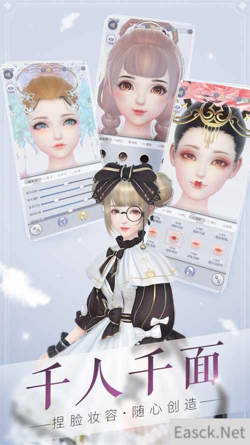 【千人千面:捏脸妆容,随心创造】 打破传统换装游戏固定格局,首创换装捏脸玩法。自定义捏脸为玩家准备了8大妆容模块和37项可调节的捏脸系数,还贴心的根据面部美学原理设置了阈值,让玩家可以随心创造自己喜欢的人物面部形象,实现千人千面!
