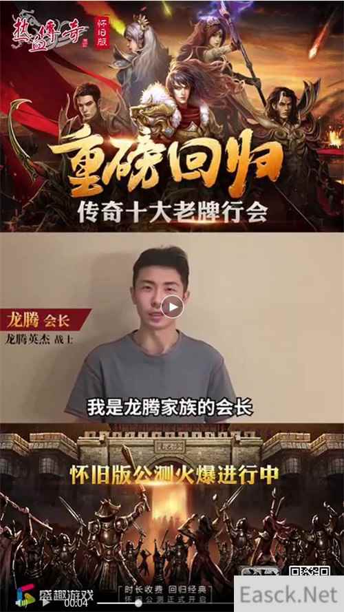 传奇各大行会“出征”《热血传奇怀旧版》 这一传奇的“出征”之旅,被录成视频,在网络上引起强势围观。有的玩家称赞这是属于“老男孩”才有的浪漫,也有不少玩家跟着排队留言“玛法老家见!”