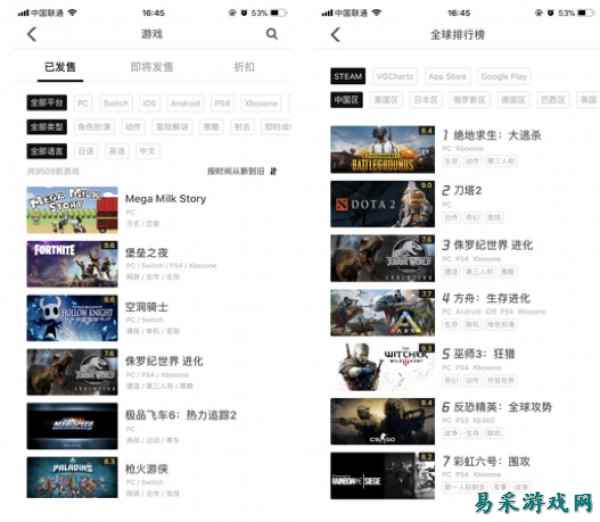 不仅如此,玩家还可以通过游戏库进一步了解、发现自己喜爱的游戏。在游戏库中有个地区和平台的实时游戏排行榜,帮助玩家及时发现游戏热点趋势。游戏界面上还展示了多家专业游戏媒体的综合评分,帮助玩家做游戏购买决策。