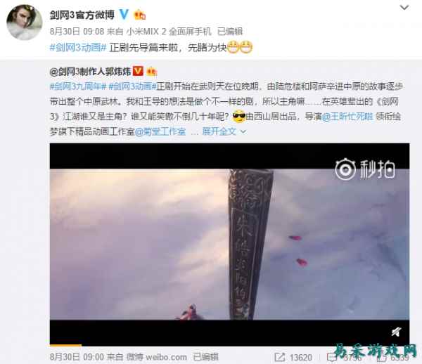 游戏里最会做动画,动画里最会做游戏,这样一句称赞剑网3的话,我想应该再合适不过。 剑网3这几年在其他领域上的涉及是越来越广,看似忘了做游戏的初心,但包括游戏在内,剑网3涉及到其他领域的产品都做的十分出色。游戏领域里影游联动做得如此出色除了剑网3应该没有几个了。 在今年剑网3九周年的庆典上,剑网3宣布启动【文化衍生】项目,其实这些衍生的文化剑网3一直在做,这次只是把它们都归类起来,做到更好。 值得一提的是,在发布会之后,郭炜炜在微博发布了由西山居出品,携手知名导演王昕、领衔绘梦旗下精品动画工作室“菊堂工作室"制作,通过动画的表现形式讲述大唐盛世剑侠江湖的系列英雄传说——《剑网3动画》先导篇。