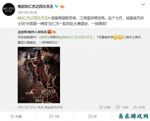 除了动漫外,联动徐克导演的《狄仁杰之四大天王》也是剑网3吹爆的一件事,给玩家们长脸的同时也说明剑网3跨领域联动做得很成功,而让粉丝玩家们真正期待的,是剑网3未来是否会出同名大电影。