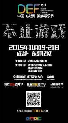 关于中国(成都)数字娱乐节DEF2015 时间:2015年11月19-21日 地点:成都东郊记忆 主办单位:全球移动游戏联盟 支持单位:成都市成华区人民政府、成都市博览局 大会报名:http://china-def.eventdove.com/ 中国(成都)数字娱乐节(Digital Entertainment Festival简称:DEF2015)将于2015年11月19-21日在成都东郊记忆举办。这场中国西南地区规模最大的,以数字娱乐为核心的TED狂欢节,是由全球移动游戏联盟主办、成都市成华区人民政府、成都市博览局鼎力支持的一场真正的数字娱乐大融合产业的全民庆典! DEF2015特别选址在中国西部大开发的引擎城市、高科技产业集聚中心、同时也是新崛起的开发者之城成都举行。作为一场“互联网+泛娱乐化”的主题秀,其中的独立音乐嘉年华、独立影像嘉年华、动漫嘉年华,以及闻名海外的全球移动游戏开发者大会(GMGDC)版块共同构成了“音游”、“影游”、“漫游”等全景互动式体验内容。来自世界游戏界、音乐界、电影界、动漫界的优秀独立制作人将齐聚一堂,共同分享前沿科技带来的视听愉悦。DEF2015邀民同乐,携民同庆,共同缔造一场数字娱乐界的“APEC”盛宴。 DEF支持媒体 铂金支持媒体 新浪游戏、腾讯游戏、凤凰游戏、网易游戏、 官方新闻媒体 搜狐手游、17173、游戏多、07073游戏网、4399手机游戏网、电玩巴士、口袋巴士、91手游网、178游戏网、安卓网、游久网、不凡游戏、18183、太平洋游戏网、超好玩、DOGAME游戏兵工厂、游戏头条、蜜蜂网、手游圈内人、游民星空 全程视频媒体 爱奇艺、优酷游戏、第一视频、花椒直播、乐视游戏 娱乐支持媒体 中国娱乐网、新华网娱乐频道、粉丝网、白鲸社区 战略合作媒体 任玩堂、天极游戏、安趣网、游戏观察、电信爱游戏、52PK、有趣点、木蚂蚁、斑马网、蚕豆网、766游戏网、艾瑞网、环球网、硅谷动力、第一资讯、骄阳网、笨手机、游戏坛子、游戏鸟、游戏狗、电视之家、智电网、游资网、1688玩、玩客、中华网游戏、至顶网、当乐网、手游龙虎豹、魔方网、安锋网、yoyo手游、5G、8477手游网、游戏陀螺、搞趣网、72G 大会支持媒体 51cto、今日头条、csdn、it经理世界、比特网、ZAKER、蓝鲸、琵琶网、游戏日报、多游网、苹果园、97973、 9秒、gamecoffee、叶子猪、it168、Techweb、投资界、大众软件、donews; 西南片区支持媒体 四川新闻网、麻辣社区、四川文化网、成都潮生活 推广合作伙伴 会鸽、活动家、互动吧、31会议、飞信、114啦 赞助、商务合作请联系: 北京总部:Sunny Mobile:13522977758 Email: fei.sun@gmgc.info 西南区:Bingo Mobile: 13980934452 Email: bin.song@gmgc.info 华南区:Vince Mobile: 18520876508 Email: peiwen.ren@gmgc.info 国际部:Jessie Mobile: 15901338441 Email: jessie.wang@gmgc.info. 媒体、市场合作请联系: Shina Mobile: 13552062626 Email: yan.yan@gmgc.info CEO俱乐部会员加入请联系: Amanda Mobile: 13810818200 Email: nannan.tan@gmgc.info