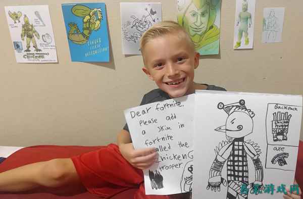 除了模式和活动之外,游戏道具的脑洞也越来越大,制冷器、气球等道具纷纷亮相,让玩家能在游戏里玩出更多花样,让战场变得更加多变有趣。 《堡垒之夜》的开放、多元、创新,以及希望所有人都能在游戏里获取乐趣的理念不仅体现在游戏内容里,游戏官方的运营以及举办的各种线上线下活动也都彰显着希望与玩家共同成长的开放心态。 前不久一位8岁的男孩康纳因为喜欢《堡垒之夜》,花很长时间为它设计了一套新皮肤“鸡人骑兵”,他的父亲帮他把设计图传到网上,再经由另一位网友Etsyturtle2二次创作后,最终被Epic采用,成为今年感恩节的纪念皮肤。大家一直对小康纳保密,直到感恩节来临他才欣喜若狂地发现自己梦想成真。
