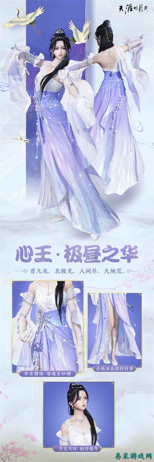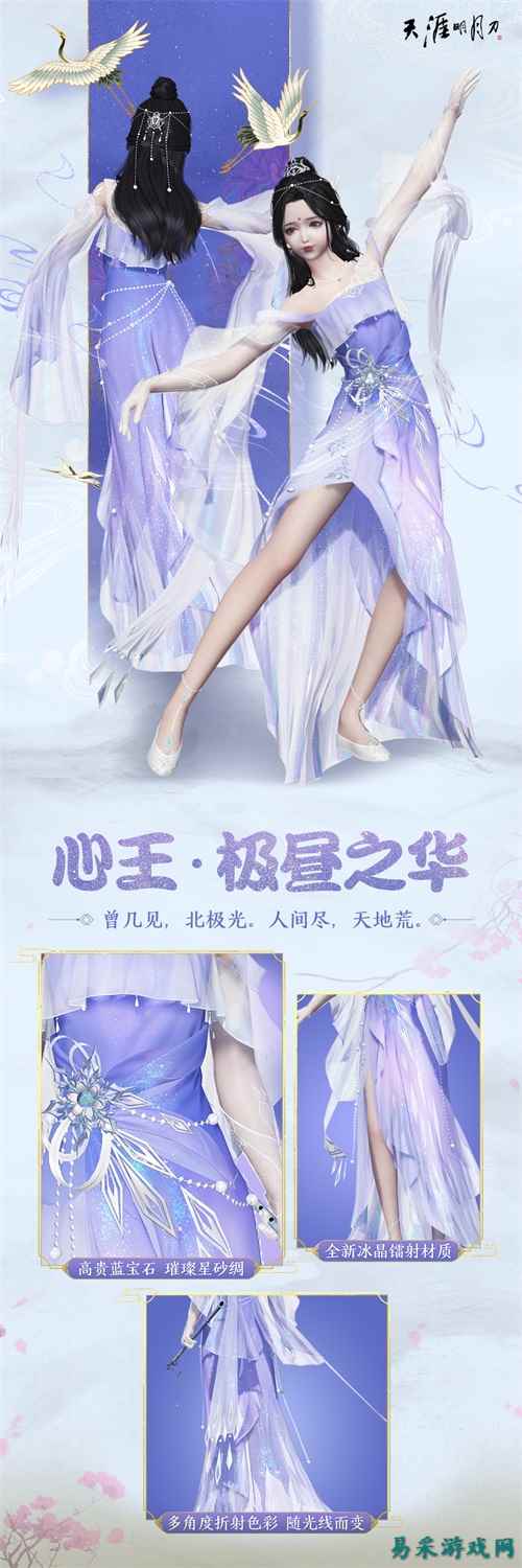 3、心王·极昼之华 曾几见,北极光。人间尽,天地荒。永恒极昼时,你可曾在雪盲之前,见到那精灵般牵引冰雪的一舞?全新冰晶镭射材质,多角度呈现缤纷色彩,随光影而变!星沙绸流光溢彩,细节丰富,超级华美!