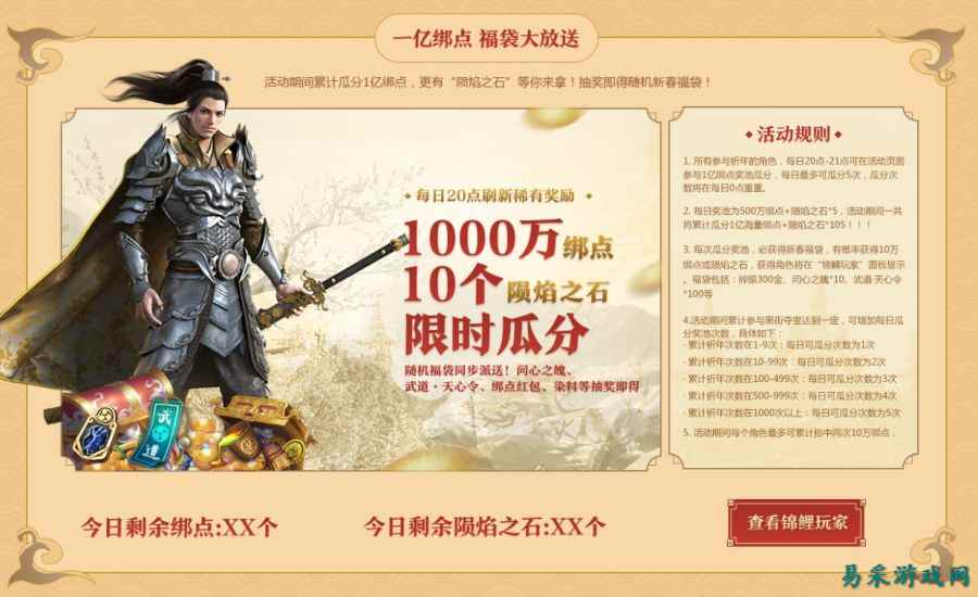 活动期间累计瓜分一亿绑点,更有陨焰之石等你来拿!比五福更有福的奖励!