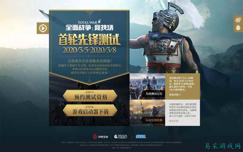 「全面战争:竞技场」首轮先锋测试 测试时间:3月5日~3月8日,每日18:00~21:00 开放下载:3月4日 12:00 下载地址:https://arena.163.com/download 测试类型:删档不付费测试 官方Q群:630717459