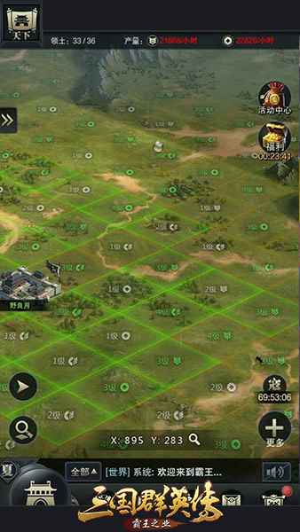 大世界地图 摆脱一层不变 四季变更影响布局 在《三国群英传-霸王之业》手游中,内城和外城景观和天气都会因为四季的变更而发生改变。游戏四季变更的周期是两天一次,每个季节会产生不同的效果,或缩短行军速度,或增加招募数量,或加快资源发展;每个季节也会有不同的天气设定,春夏两季都会有晴天和雨天,艳阳高照的秋季只有晴天,冬季更增加下雪的景致。摆脱一层不变,既能给玩家减缓视觉疲劳,更能强化游戏的策略性。