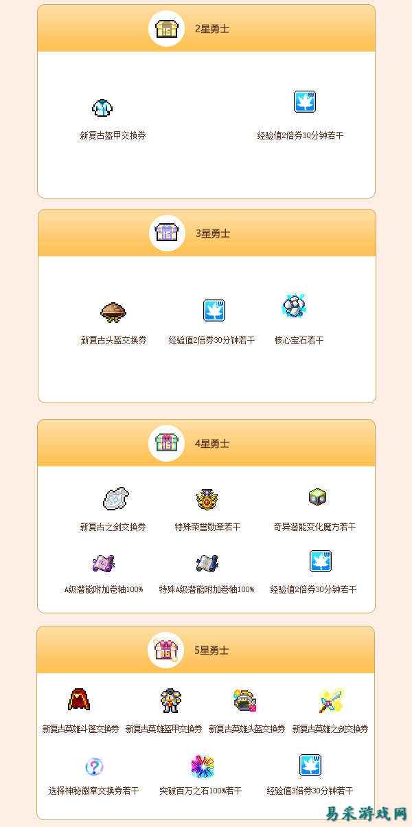 遭遇危机的新复古王国,期待着拯救她的荣誉勇士! 6月23日至8月4日,玩家可接取【新复古世界】相关任务,参与版本活动。接受任务的玩家将化身为被选中的勇士,通过解除4种传说中的装备来获得力量。达到活动指定星级时,将可获得新复古装备和荣誉勇士礼物。