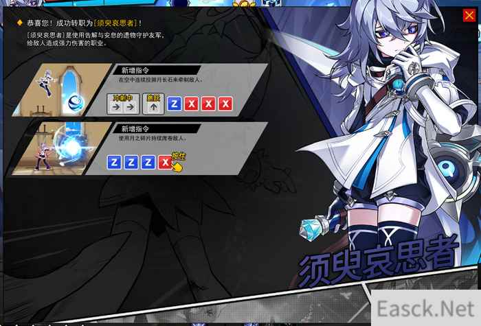 “须臾哀思者”立绘 当游戏内诺亚的等级达到15级时,可以通过相关NPC接取转职任务,完成任务后可以将其转职为一转职业“须臾哀思者”,想要快速转职的玩家,也可以在商城购买转职道具进行快速转职。