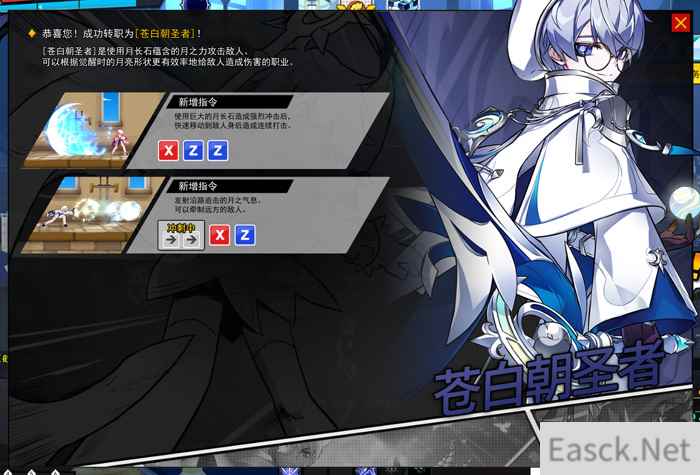 二转职业的晋级宝箱同样在邮箱内领取。转职后的诺亚使用月长石蕴含的月之力攻击敌人,可以根据觉醒时的月亮形状更有效率地给敌人造成伤害。等级达到65级时可以开放他的超技能“赏月”,四散的花瓣,巨型的月亮,技能效果非常炫丽,可以给范围内的敌人造成致命打击。