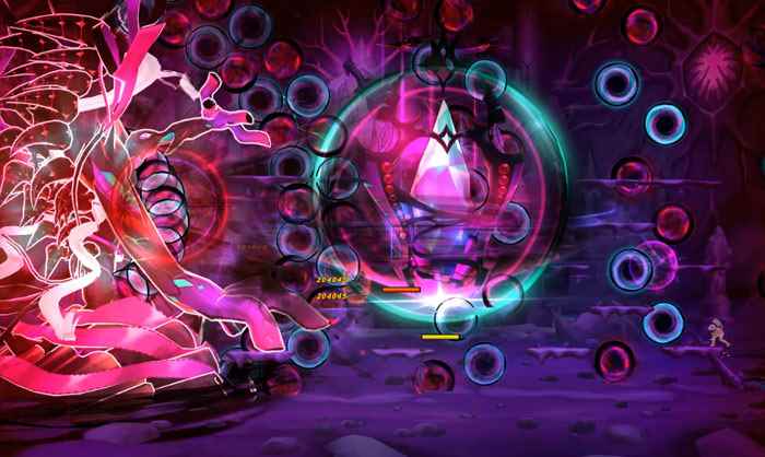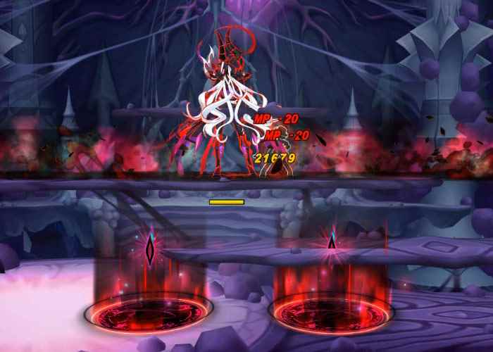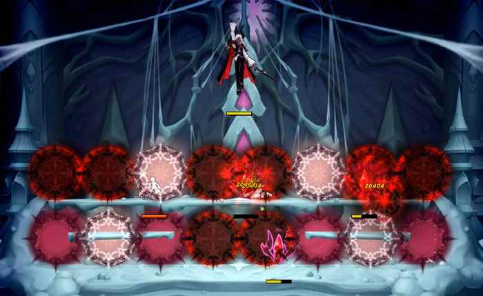 第3关卡的场景是阶梯式舞台,比较考验玩家的跳跃和操作能力。该关卡镇守的BOSS“深渊之王”,听上去就是很可怕的一位大人物。他主要在舞台的两侧进行攻击,除了发射射线和爆炸球这种基本攻击之外,还可以发射大量的能量球进行大面积的攻击。该关卡有个与众不同的地方在于独特的F4设置,需要玩家运用F4不同模式来应对BOSS,挑战十足,考验冒险家实力的时候到咯!