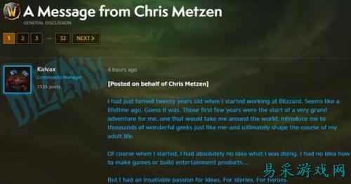 最近,暴雪副总裁克里斯·梅森(Chris Metzen)在论坛中宣布退休,他从20岁入职以来,在暴雪工作已经超过了23年,期间负责《魔兽》、《暗黑》和《星际》三大系列的主线世界架构,可以说是暴雪大作世界观的主要缔造者之一,不过他在博客中表示,暴雪的发展已经越来越好,把这些世界交给最具热情、天分和专注的工匠们很放心。 梅森在公开信中表示,退休以后没有加入其他公司或者创业的打算,而是希望专注于自己的家庭,放慢生活节奏,以下是整理的公开信内容: