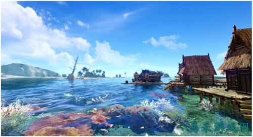珊瑚海岸中蔚蓝的天空与大海融为一体,海岸上到处都是形状各异的珊瑚,喜欢这里的玩家在这海岸之上盖起了房子,每天吹着海风享受这绝美的风景,日子过得悠闲惬意。