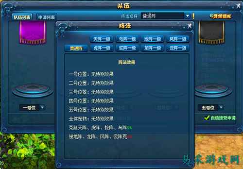 每个阵法都会给不同位置的队员数值上的加成效果。以龙阵为例,一号位置会增加12%的伤害,在这个位置上就十分适合放输出最高的队员,让他的伤害更上一层楼;而二,三号位置则是增加速度,可以将干扰系的队友放在这里。具体如何安排,视队伍的需要而定,并不存在“数学定理”式的标准答案。 【相生相克 带来优势】