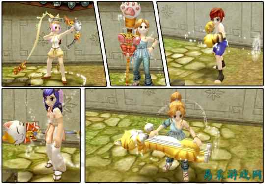 《热血江湖》拥有完善的武器系统,各大职业使用不同种类的武器。刀客使用刀,枪客使用枪,弓手当然是用弓箭……而近期推出的全新道具——妖花青草“喵族”则能让武器都秒变猫咪。玩家只要在游戏中使用妖花青草“喵族”,角色所使用的武器就华丽变身,并且不同职业的武器,变身的样子也不同。刀客的刀是伸展四肢的起司猫,剑客的剑柄变成了大猫爪,乐师的琴长在了橘猫的肚子上,而格斗家的拳套则变成了2个猫爪,打斗的时候仿佛猫猫在挠人……各种符合职业特色的改变,完全颠覆了武器给你的传统印象,又萌又搞笑。