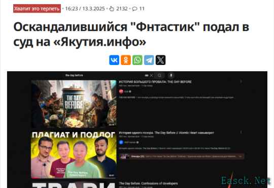 当地时间3月13日,一家俄罗斯媒体Yakutia.info宣布被经典夭折游戏《浩劫前夕》开发商Fntastic起诉,因在之前对游戏的报道中多次使用诈欺词语。 ![]() ·《The Day Before》是一款开放世界生存类网络游戏,背景设置在疫情后充满杀机的美国,那里食人的感染者肆虐,幸存者为了食物、武器和车辆而与之残杀。 《浩劫前夕》在2023年12月时开启抢先体验,游戏质量让几乎所有玩家大失所望,在一片差评的攻击下,官方宣布直接停售,工作室也宣布关闭。 ![]() ·不过如今开发商Fntastic又进入了公众视线,似乎开始秋后算账,俄罗斯媒体Yakutia.info披露了被《浩劫前夕》开发商Fntastic起诉的事情,因在之前对游戏的报道中多次使用诈欺词语(скам)。 ·目前诉讼仍在进行中,敬请期待后续消息。 |