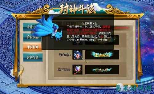 “封神斗法”版本还为各位道友推出了全新升级系统九耀神游,所有等级大于110级,并完成了飞仙渡劫任务的玩家均可参与。此玩法中的任务奖励无等级差削减、自带全局双倍效果、奖励受三倍影响,还有概率获得粉材奖励、天赋技能石、天赋魂兽石等奖励。玩家可自行选择九曜神游或者大乘九曜神游进行挑战。其中,大乘九曜神游的难度以及奖励更高,所以玩家每次进入大乘九曜神游时都需要消耗42000游戏币。