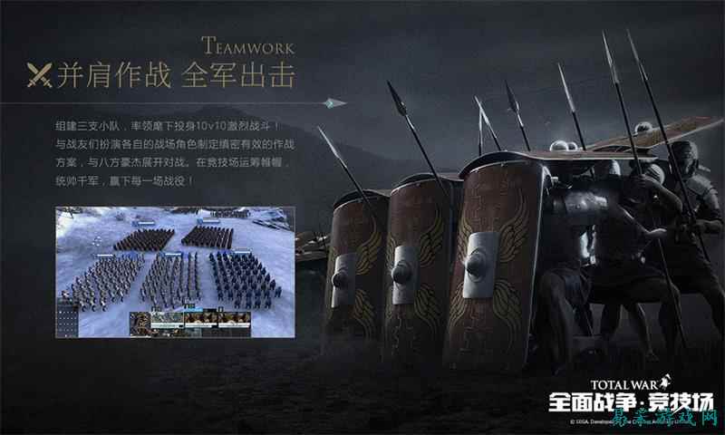 20年全战系列首款网游 邀你体验 《全面战争:竞技场》是全面战争家族首款网游,你可以以罗马、希腊、迦太基、蛮族传奇指挥官的身份,体验游戏中12张经典战役地图,再现斯巴达列奥尼达斯王镇守温泉关的英姿,并在米卡里指挥自己的军队逆转攻守之势,实现绝地重生。 你可以根据使用的指挥官对应技能及对手的军队配置,搭配不同的兵种单位,负责伏击、突袭、防御等不同职能,与其他队友在10V10的MOBA+RTS战场上共同作战。 在个人实力之外,团队的配合也将是左右战局的重要因素!相信每一位喜欢战争策略竞技网游的玩家,都不会错过这款全面战争家族的最新力作!