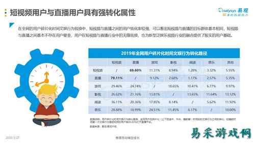 从用户去看,易观的报告提到,在全网用户文娱用户碎片化时间转化中,短视频与直播间的转化较强,短视频用户中69.6%的用户转化路径是直播、79.11%的直播用户转化路径是短视频。 所以,无论是从平台端、内容产出端、内容端、用户端,都可以看到,短视频用户与直播用户有着极高的重合度,两者之间的用户使用行为也极其类似。从而逐导致短视频和直播之间形成了一体,彼此互融从而满足用户和而不同的需求,形成了所谓的新型泛娱乐视频这个概念。 融合背后的问题 对于平台方而言,融合可以带来流量上的激增,同时更好的运营现有流量,对于创作者而言融合能够带来更立体的曝光,对于用户而言则是在解决需求上可以更便捷。