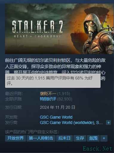 《潜行者2:切尔诺贝利之心》发布于去年12月,是由乌克兰厂商开发的一款开放世界FPS游戏。由于特殊的国际形势,这家乌克兰开发商的游戏制作过程并不顺利。屡经波折,最终才完成了游戏的上线。