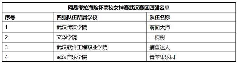 本次高校联赛还专门设置了“网易考拉海购杯高校女神赛”,每一支女神赛战队队员都是妹子。 赛事组委会不仅为女神赛里排名前四的战队设置了独立的奖金,还有网易考拉海购提供的代金券,女神就算战斗也要美美的!以下4支女神战队成功晋级4月15日的女神赛冠军角逐,冠军宝座花落谁家?让我们拭目以待。