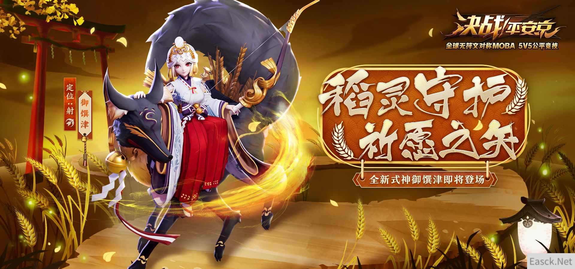 祈愿之神降世,全新式神御馔津上线 祈愿神舞,稻荷飘香。明镜立于额前,金黄谷穗满筐,少女手握长弓,肩负箭矢,身倚灵狐,轻巧地梭巡在田间。今日,《决战!平安京》全新式神御馔津也将同步上线,这位温柔而又坚毅的式神定位为“射”,有着出色的输出能力与控制能力,她将用祈愿的箭矢化解世间的绝望,实现人们一切美好的愿望,即刻与她携手而战吧!