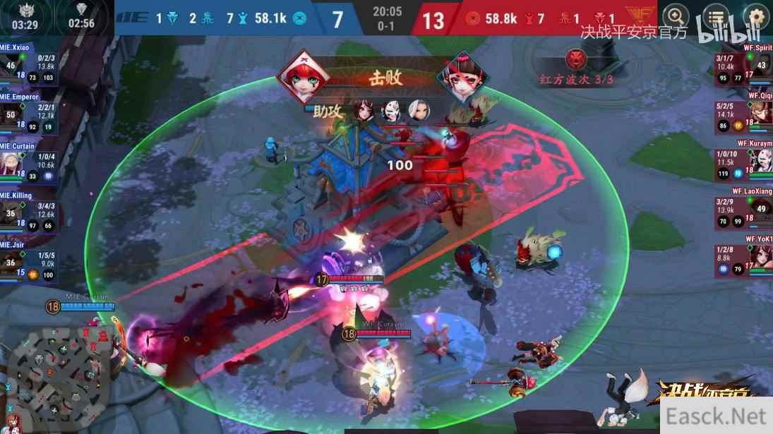 在19分,拿下大蛇的WF手握比赛主动权,一举攻上MIE高地,WF在MIE高地打出2换4,有惊无险推掉了对方基地。