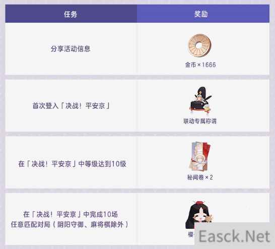 而在「决战!平安京」游戏中完成以下小任务,可在「百闻牌」中获得相应的奖励: