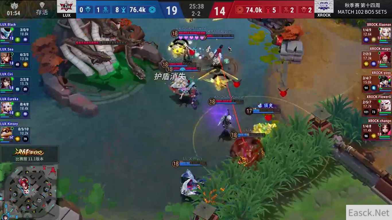 LUX-XROCK:一波三折,稳者得胜 LUX和XROCK的比赛也是一波三折。第一局XROCK凭借对线优势滚雪球压垮LUX。第二局LUX回敬同样的打法,还以颜色。第三局LUX祭出大招法辅玉藻前,疯狂推进抢到赛点。第四局LUX改变阵容但被XROCK强势扳平。决胜局双方对战荡气回肠,最终XROCK极限赢下致命的第三条大蛇团,顺利进入下一轮,而LUX告别OPL赛场。